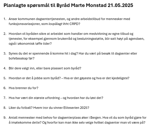 Det var forberedt mange gode spørsmål til byråden. En fantastisk dag med mange god innspill og diskusjoner.